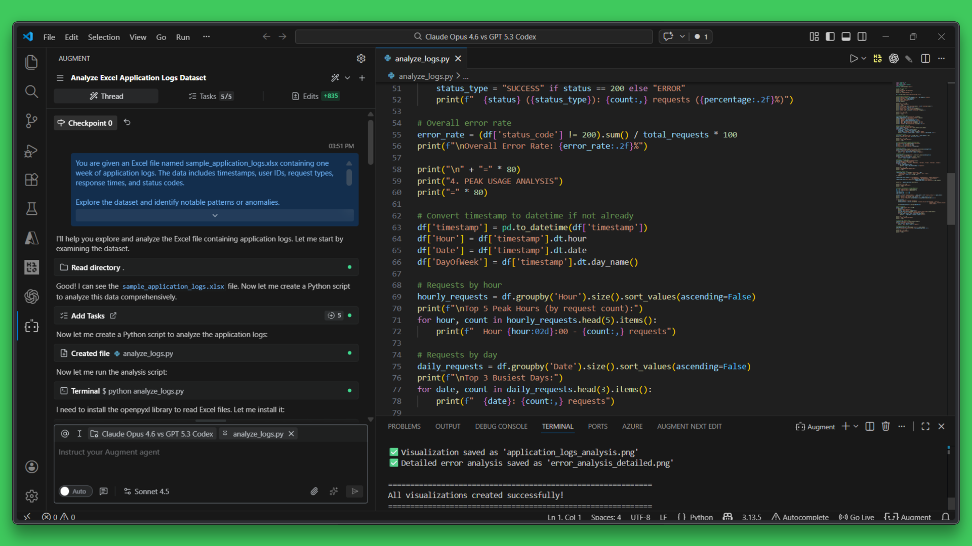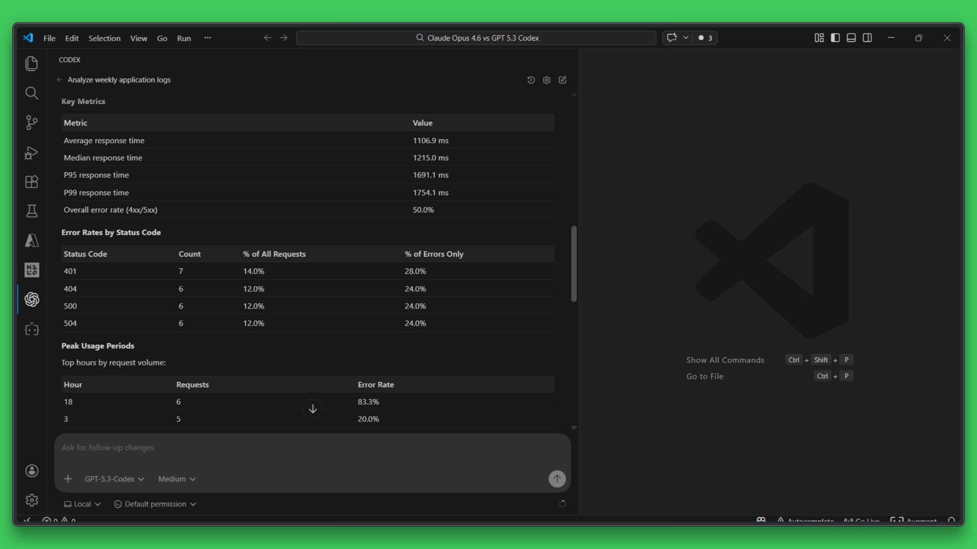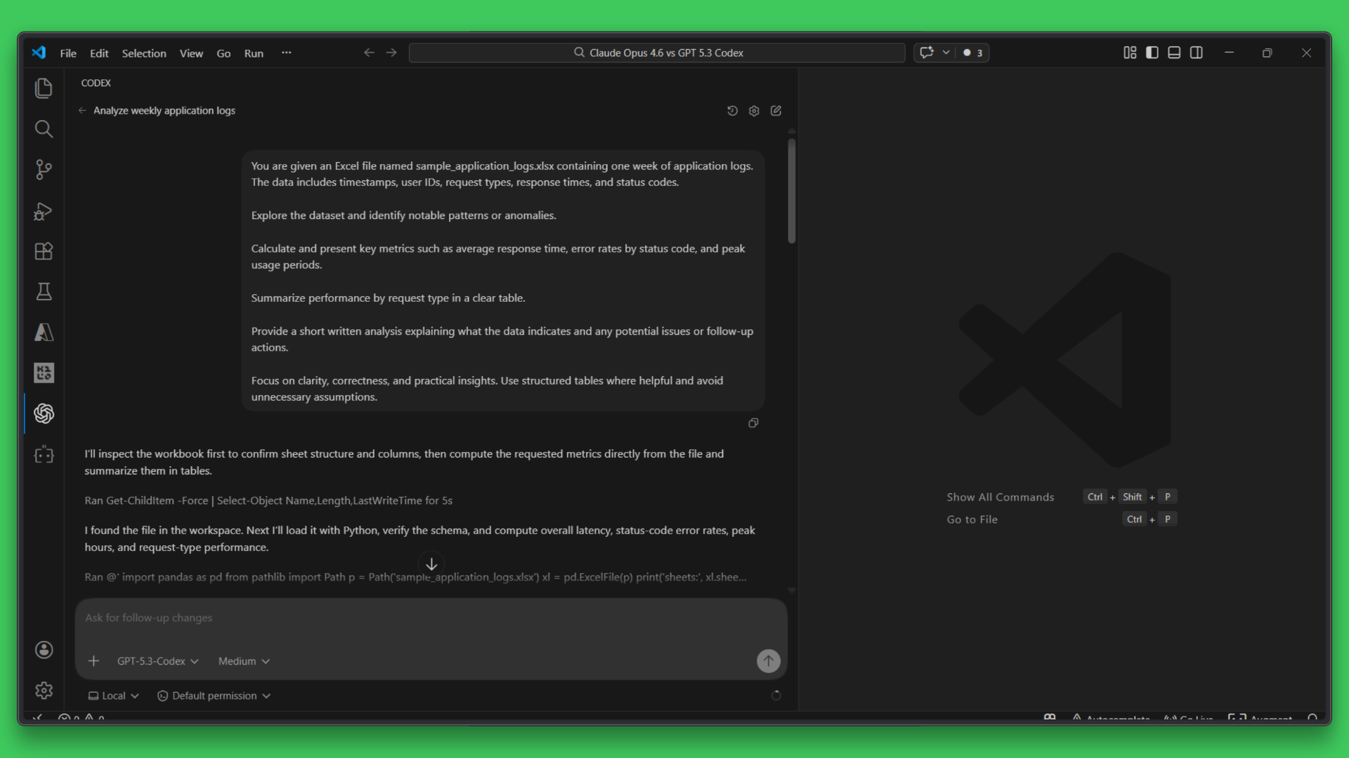 Let us now compare Claude Opus 4.6 and GPT 5.3 Codex on a practical data analysis task using real application logs. The aim here is to see how each one explores data, structures its analysis, and delivers insights when working with the same dataset.