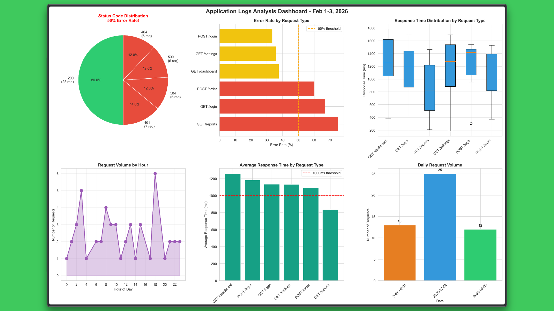 > are given an Excel file named **`sample_application_logs.xlsx`** containing one week of application logs. The data includes timestamps, user IDs, request types, response times, and status codes.