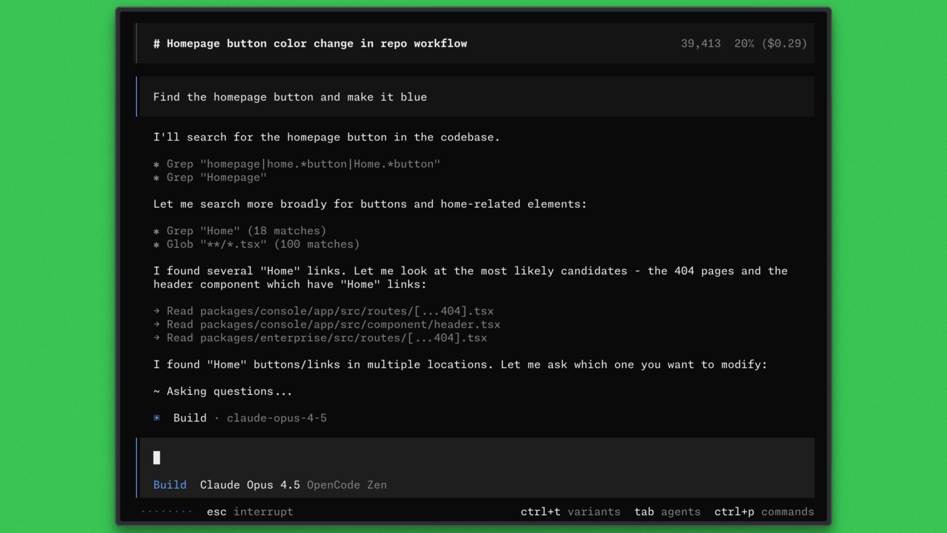 OpenCode took a more direct approach, focusing on the root cause and validating changes through execution. Its workflow felt faster and more continuous, with fewer built-in interruptions. When speed is a priority, OpenCode also allows teams to switch to faster or lighter models, adjusting performance without changing tools.